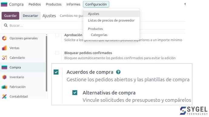 - Activa la opción Acuerdos de compra.