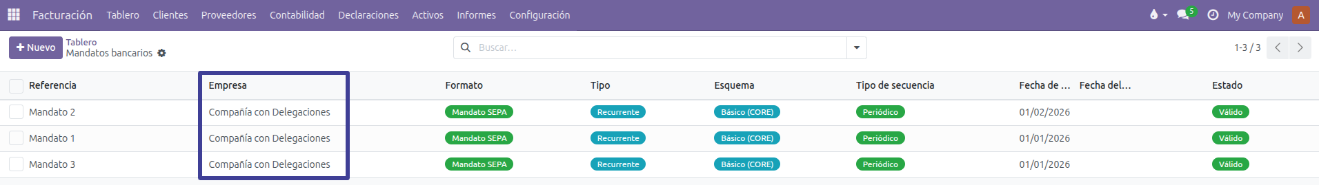 De este modo, es posible gestionar distintos mandatos bancarios dentro de un mismo contacto, adaptando el proceso de cobro a estructuras con varias delegaciones o cuentas bancarias diferenciadas.