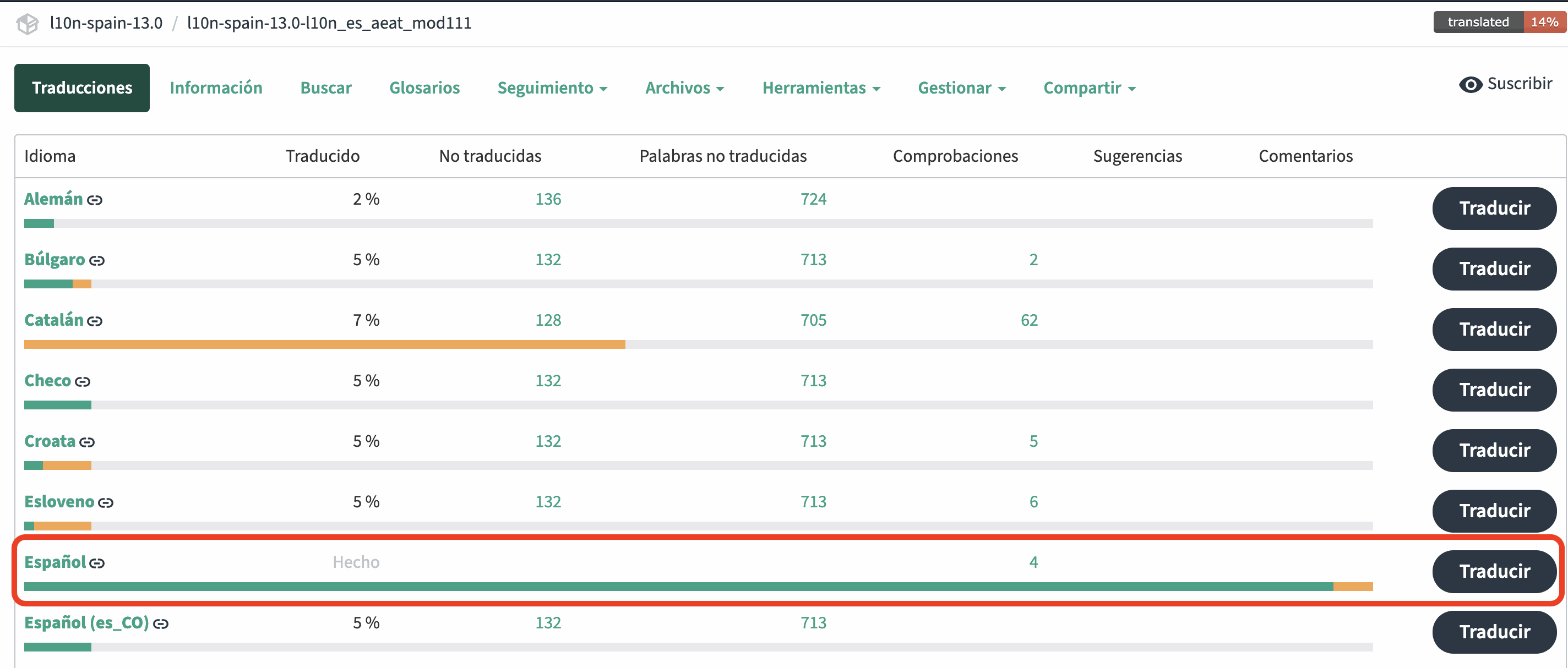 Una vez tengamos la cuenta creada en Weblate deberemos enviar un email a transbot@odoo-community.org indicando el login y que idiomas vamos a traducir, para que desde OCA nos den permisos.
