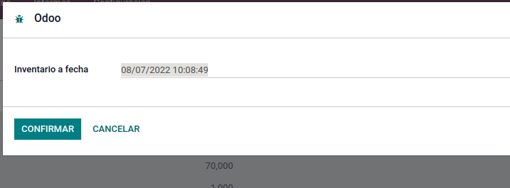 Al seleccionar la opción Inventario a fecha se mostrará un asistente, donde podremos seleccionar una fecha en particular. Gracias a esta opción, podremos saber el estado de nuestro inventario y su respectiva valoración en una fecha determinada.