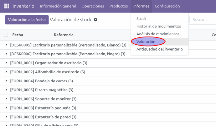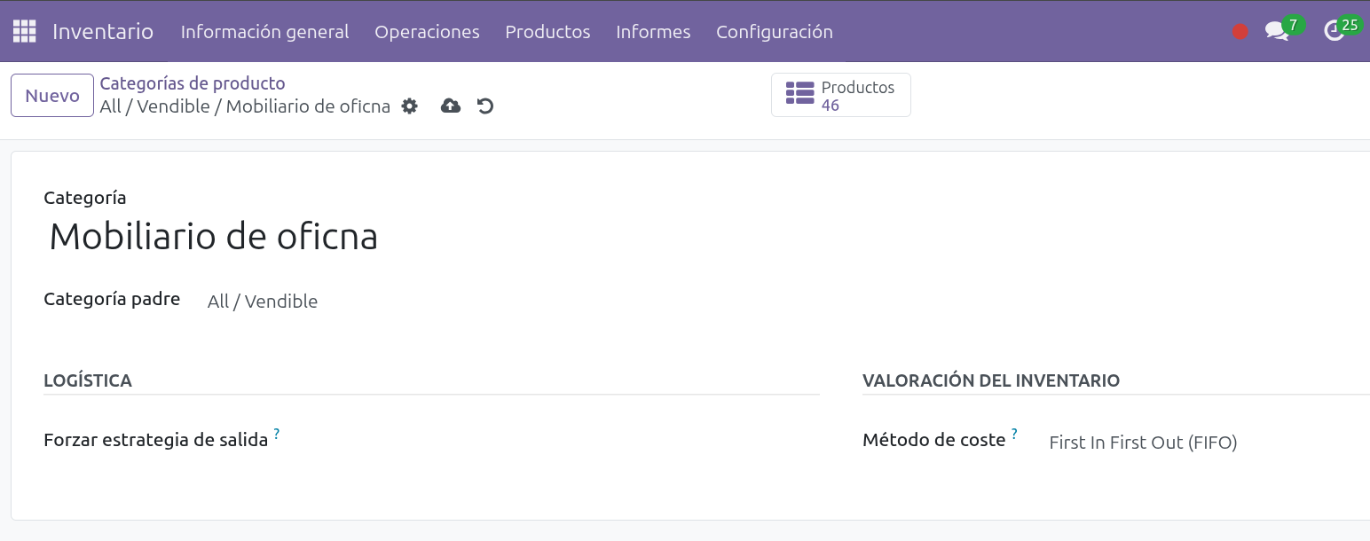 Para que un producto utilice FIFO como método de valoración, debe pertenecer a una categoría de producto configurada con este método.