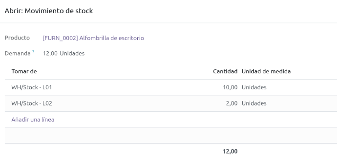 • Stock restante: 8 unidades del lote L02, a 12 €/ud.