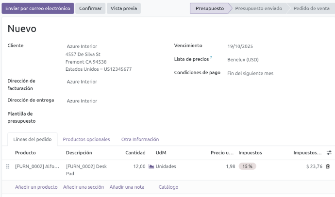 Con el método de valoración FIFO, Odoo asigna a cada venta el coste de las unidades más antiguas disponibles en stock. Esto alinea la valoración contable con el flujo físico de mercancías y mejora la precisión del margen comercial.