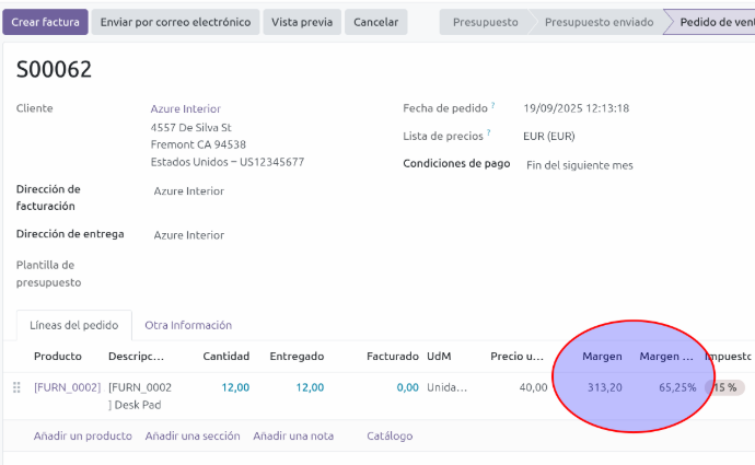 Ventas > Configuración > Ajustes > Margen.  Guía completa: Cómo trabajar con márgenes en Odoo.