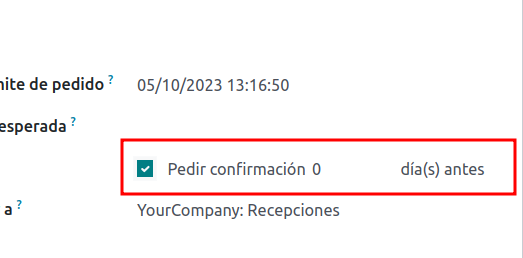 Al seleccionar la opción Pedir confirmación, se mostrará un nuevo campo, donde podremos establecer el valor de cuántos días antes de la entrega esperada se ha de enviar el correo.